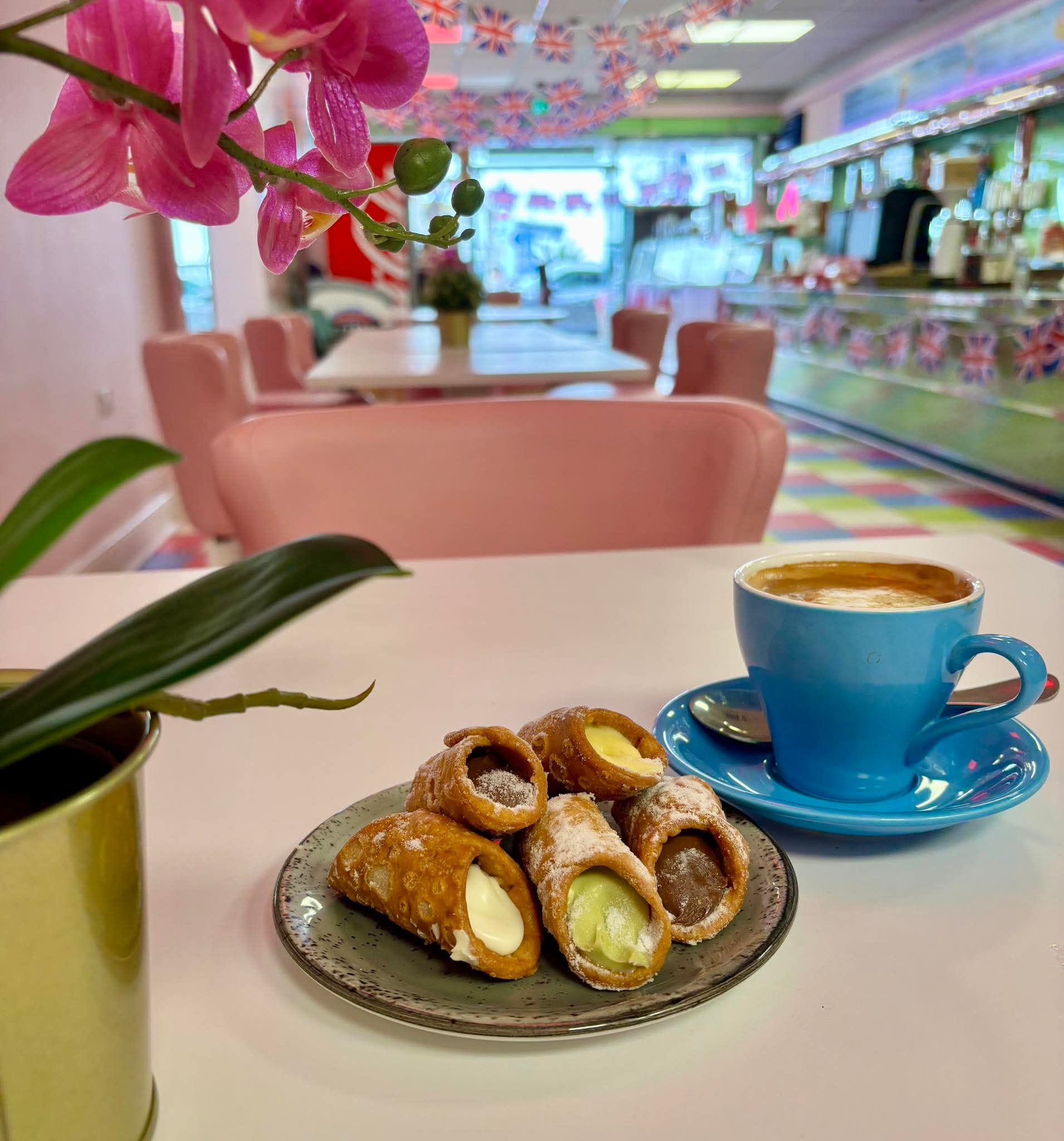 Dogs are welcome inside the parlour and at the outdoor seating areas.