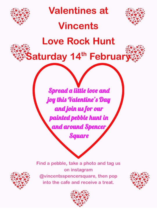 Vincents Valentine’s Day ‘Love Rock Hunt’ in Spencer Square .