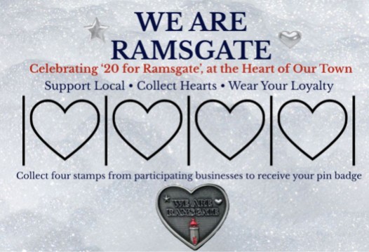 Ramsgate Town Council will be launching a loyalty campaign ‘We are Ramsgate’ – Come and take your photo with the beautiful ‘We Are Ramsgate’ community heart, pick up a loyalty card and start collecting stamps while celebrating the people and places that make Ramsgate special.